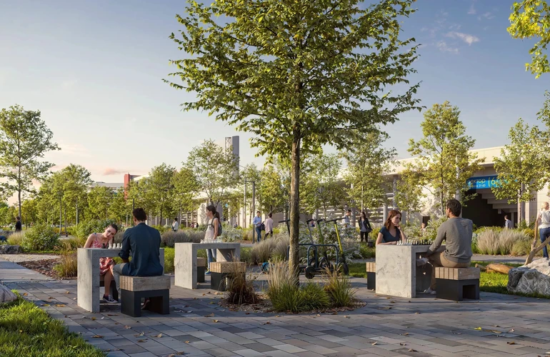 Чтобы дети как можно больше времени проводили на улице, мы придумали особый формат игровых площадок — PlayHub. Каждая из них с уникальным ландшафтом и игровыми плотинами на искусственном ручье. А благодаря абстрактным формам игрового оборудования дети могут придумать бесконечное количество игр.